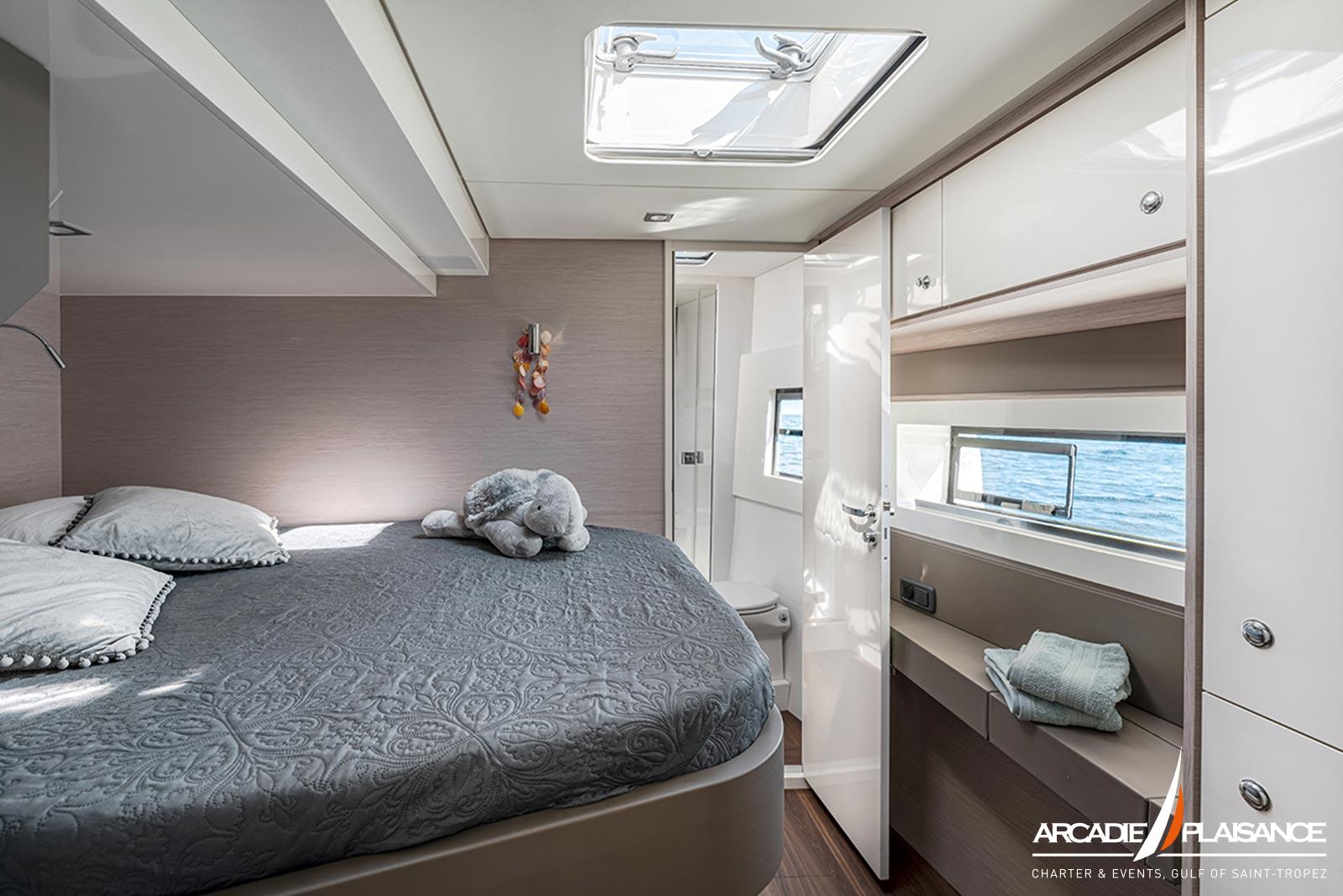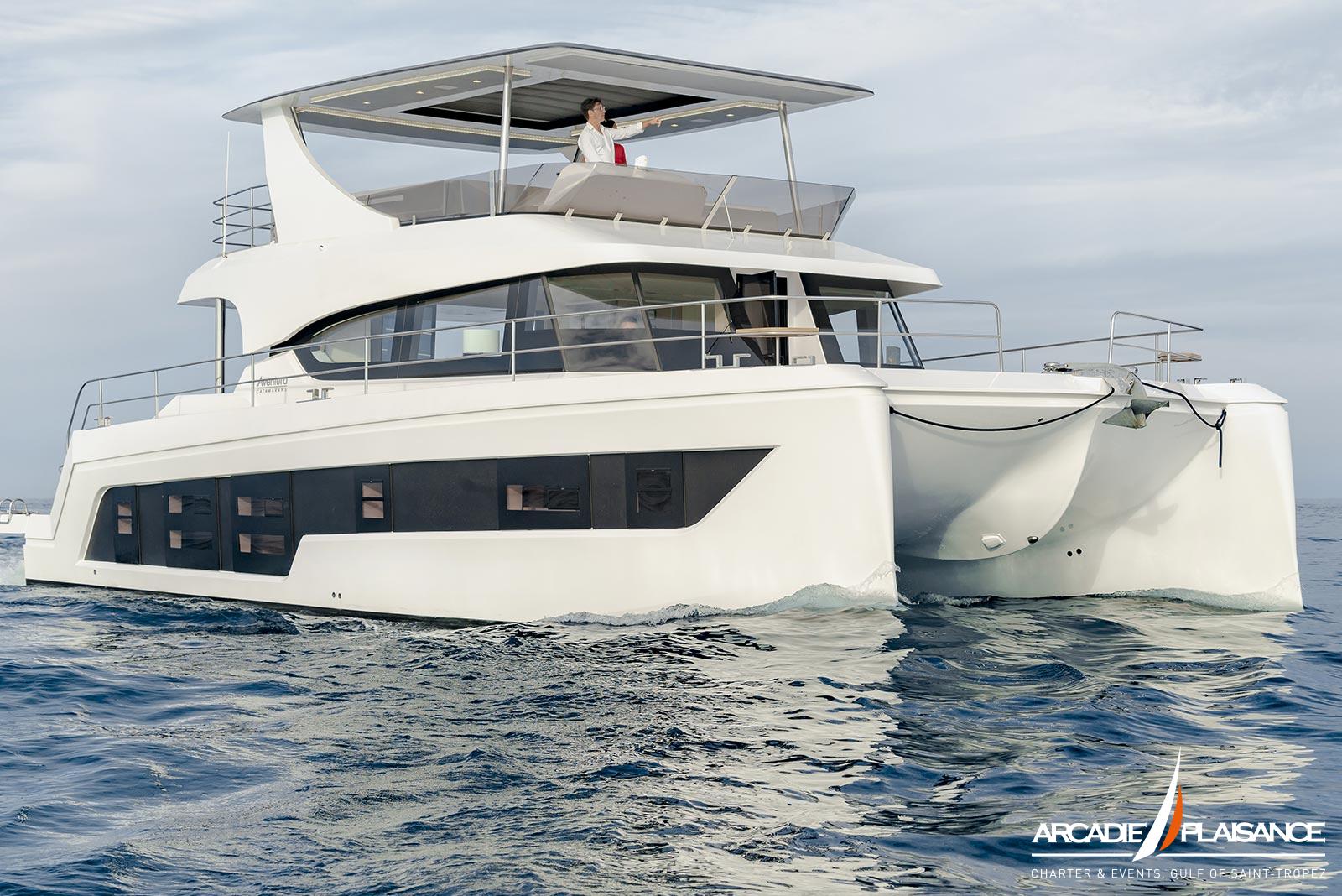 Louez le catamaran à moteur Aventura 56 MY, Mavic qui allie luxe, autonomie et confort avec ses 5 cabines et 5 salles de bain.