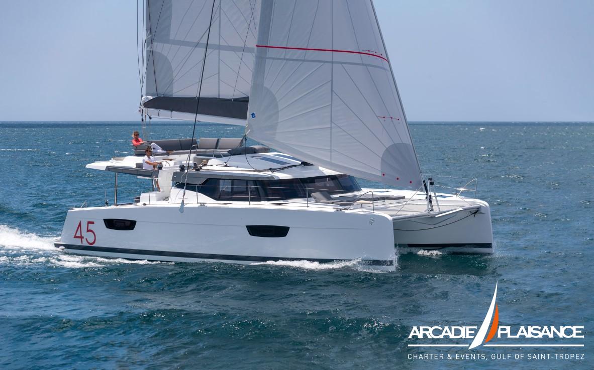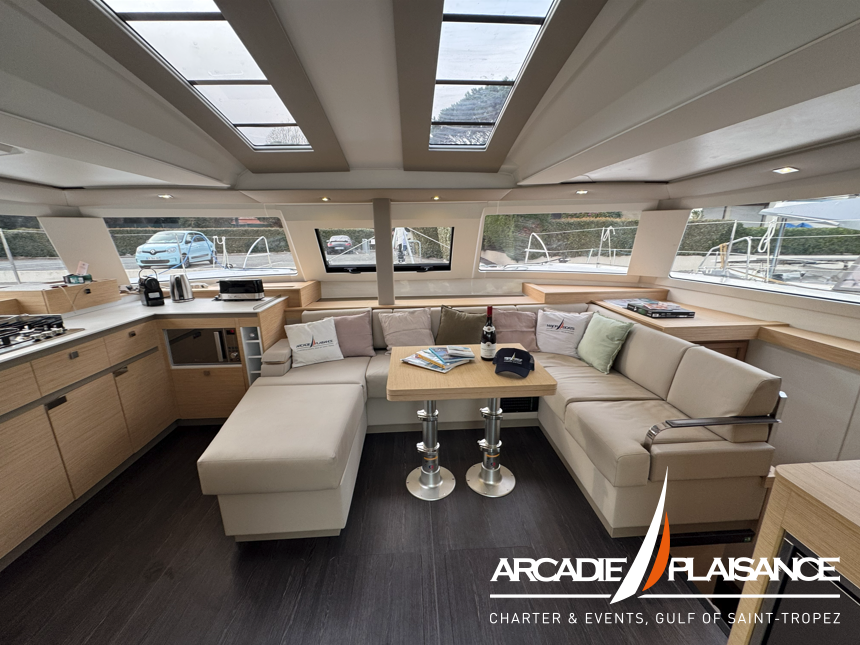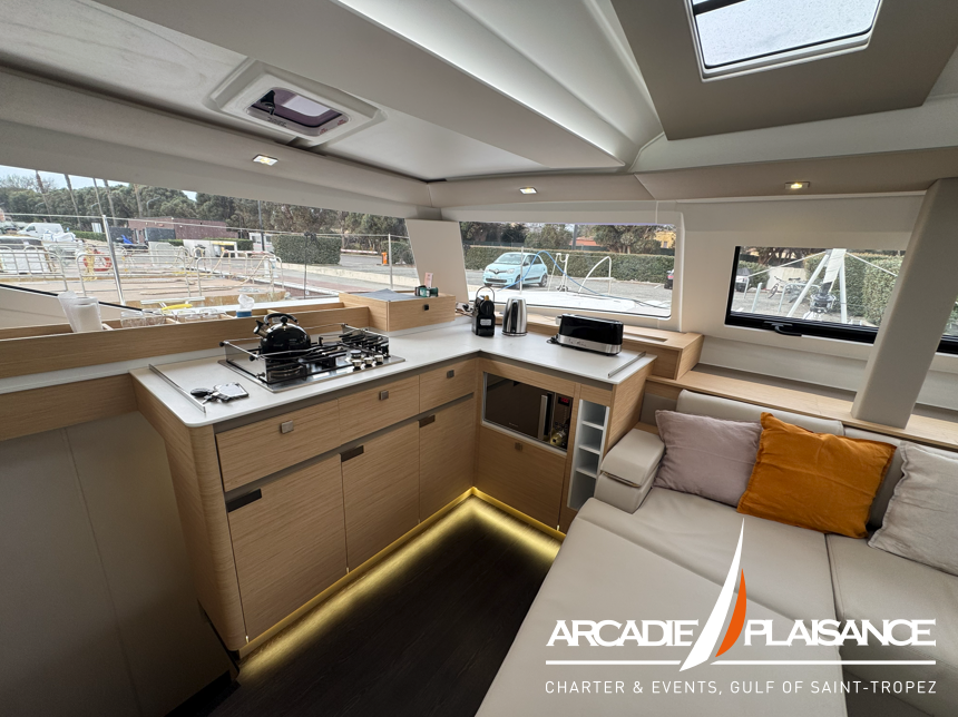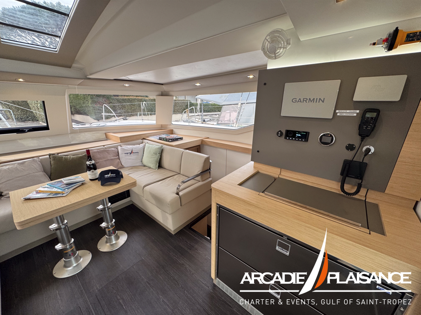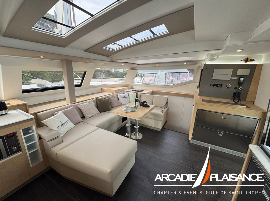 Véritable catamaran de croisière, baigné de lumière, l’Elba 45 offre un immense cockpit ouvert sur un carré innovant, avec l’un des plus grands espaces lounge de sa catégorie, ainsi qu’un salon et de nombreux rangements « invisibles » pour une harmonie totale.