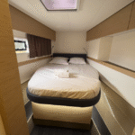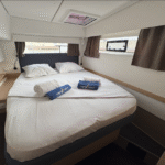 Ce catamaran incarne l’équilibre parfait entre performance et confort, offrant à ses passagers une expérience raffinée et inoubliable en mer.