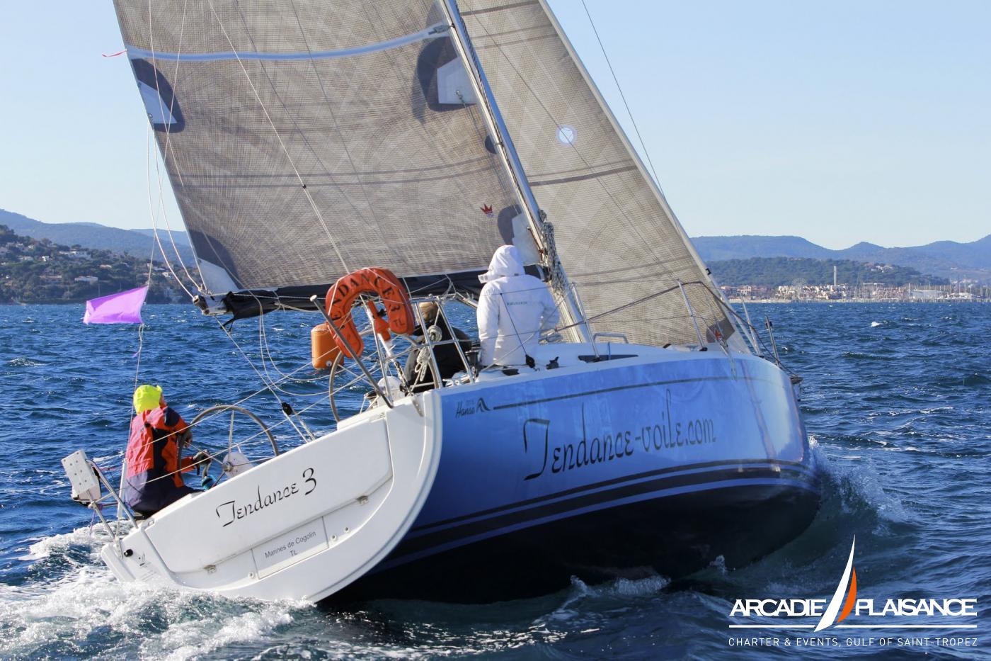 Notre voilier « Tendance 3 » est équipé des options suivantes : génois auto-vireur, GV lattée, gennaker ou spi, barre à roue, plateforme de bain et inverter.