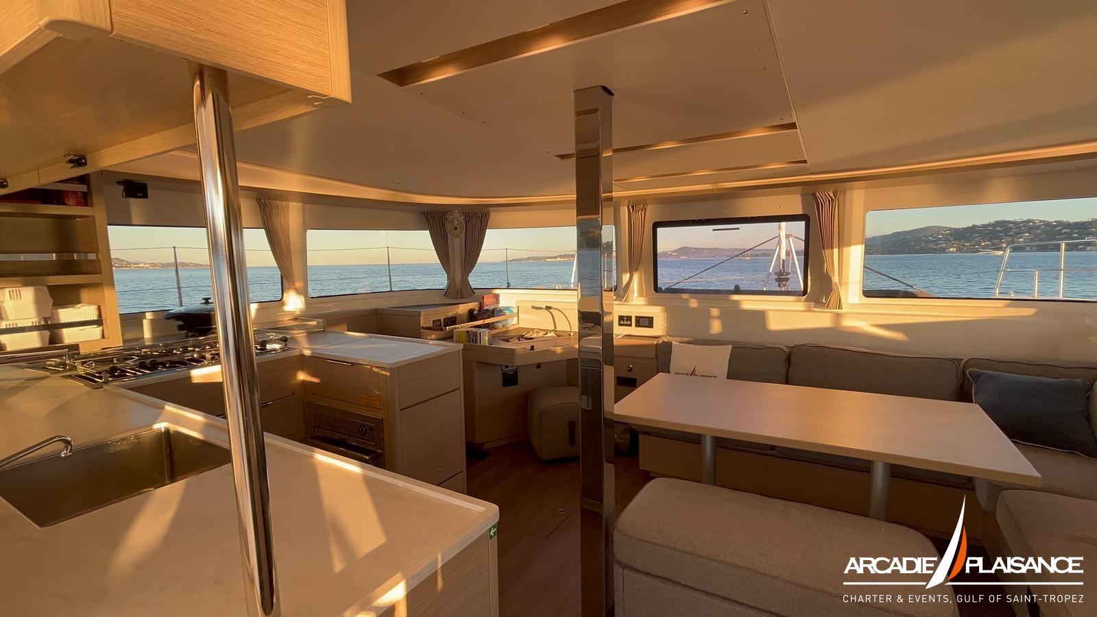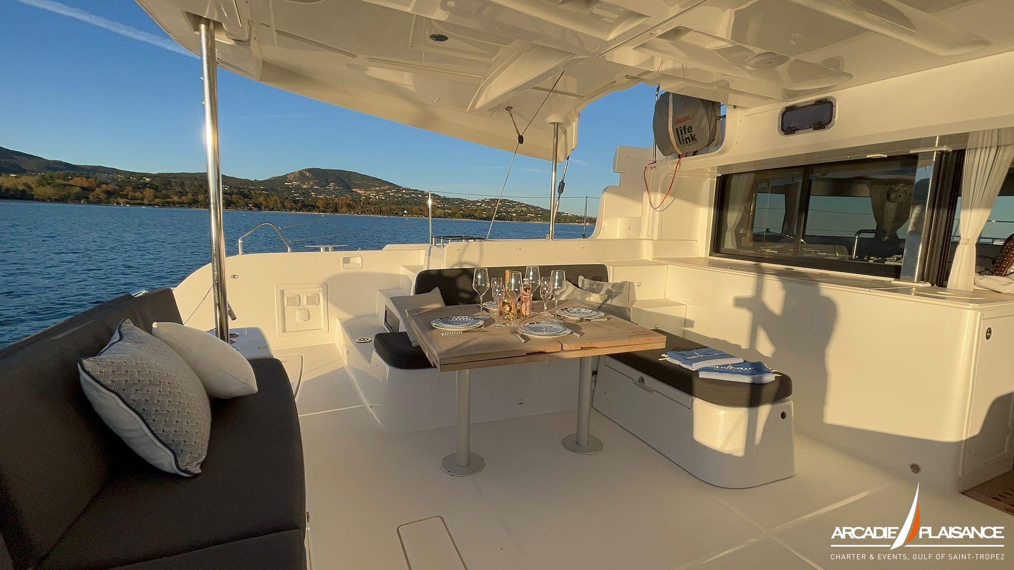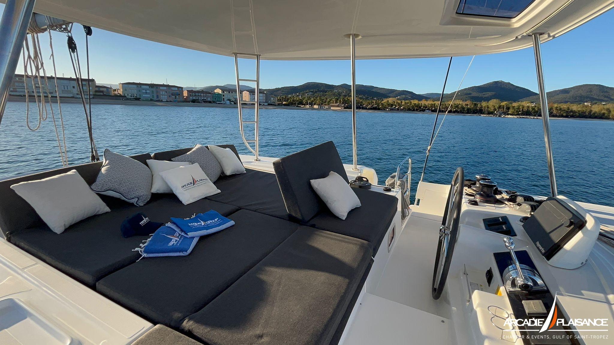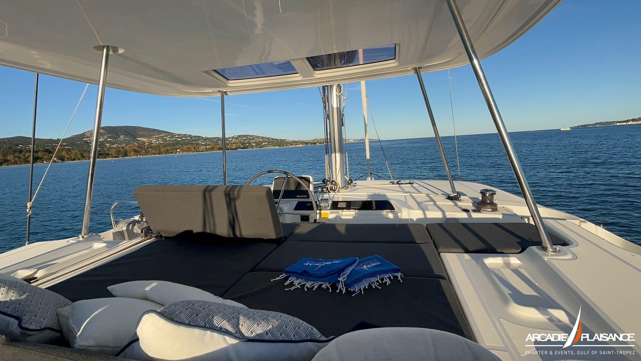 Nous avons le plaisir de vous présenter M&M, un luxueux Lagoon 46 millésime 2025, disponible à la location au départ de notre base nautique de Port-Grimaud.