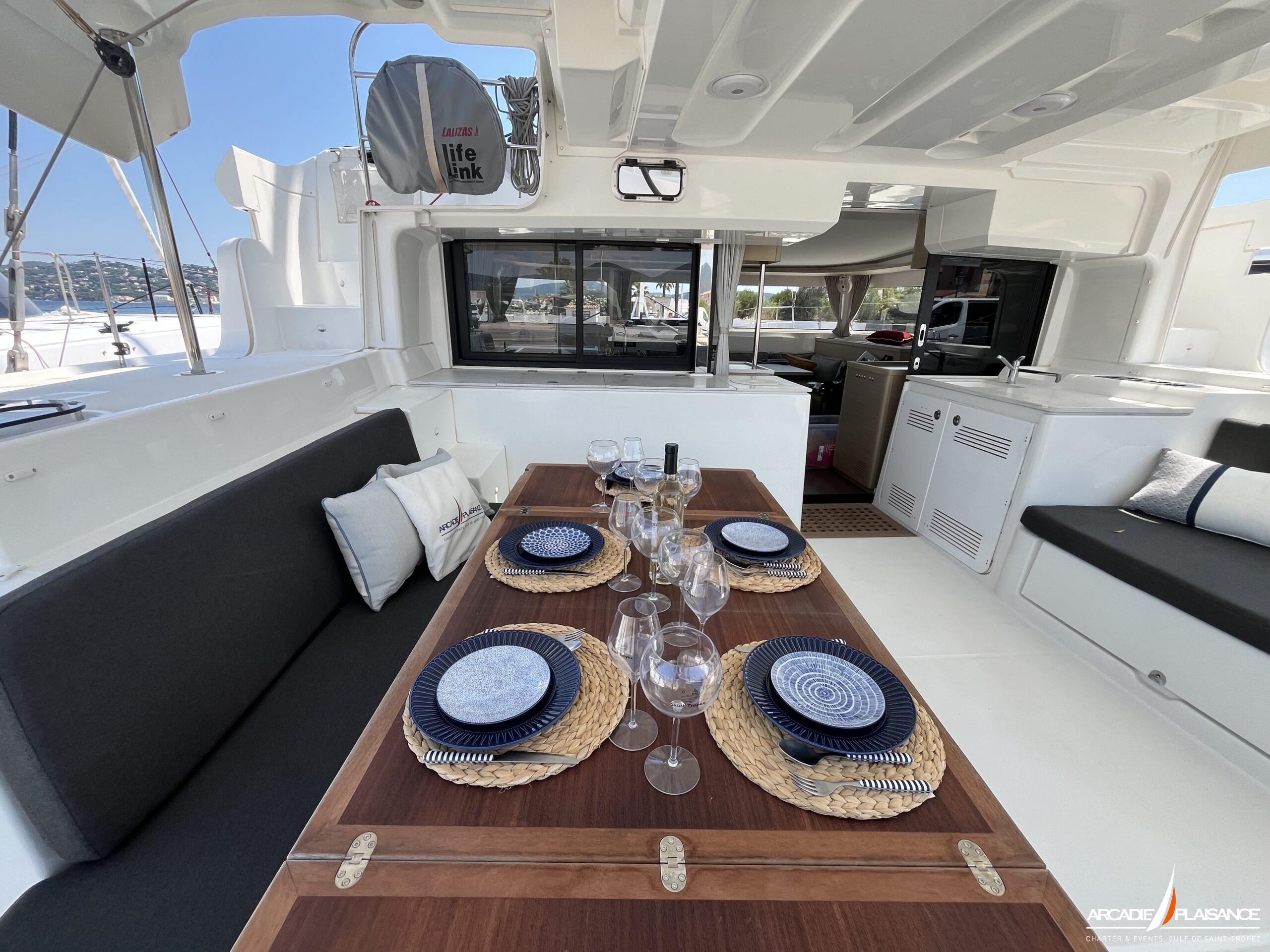 Ce catamaran conjugue élégance, confort et performance, pour des moments uniques en mer.