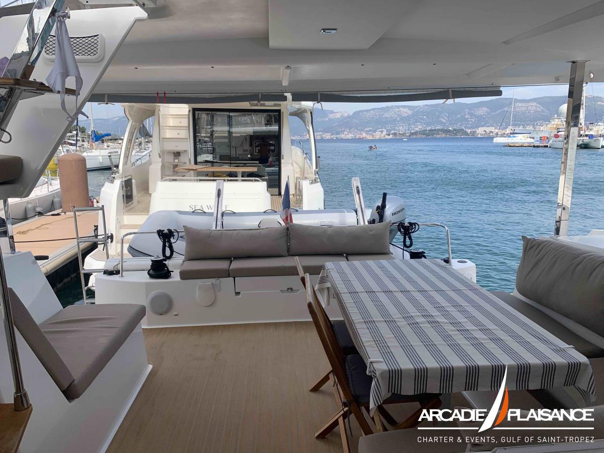 Inclus : annexe + moteur, nettoyage final, consommables (gaz + batterie, une éponge, liquide vaisselle, sacs poubelles) + un accueil personnalisé (avec une coupe de champagne), un luxueux package de bienvenue à bord (une bouteille de champagne, un bouquet de fleurs de saison, des boissons soft, une assiette de fruits frais (selon saison), service de livraison inclus, draps et serviettes fournies (pour chaque cabine) + lits faits par notre équipe de ménage, un sup, service de conciergerie disponible (pendant les heures d’ouverture des bureaux), départ tardif si disponible.